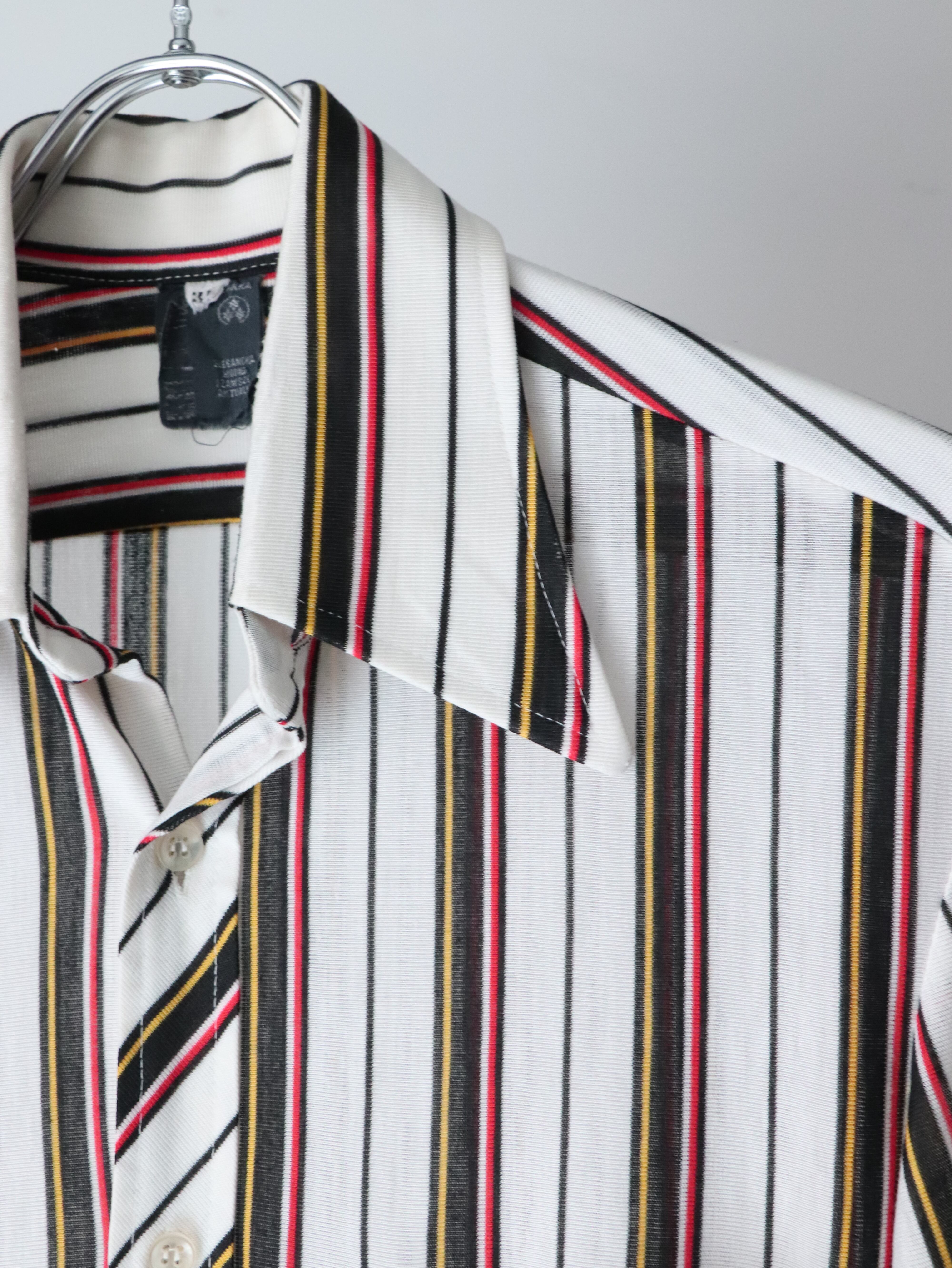 ストライプと斜めのストライプが効いたマルチカラーのシャツです。