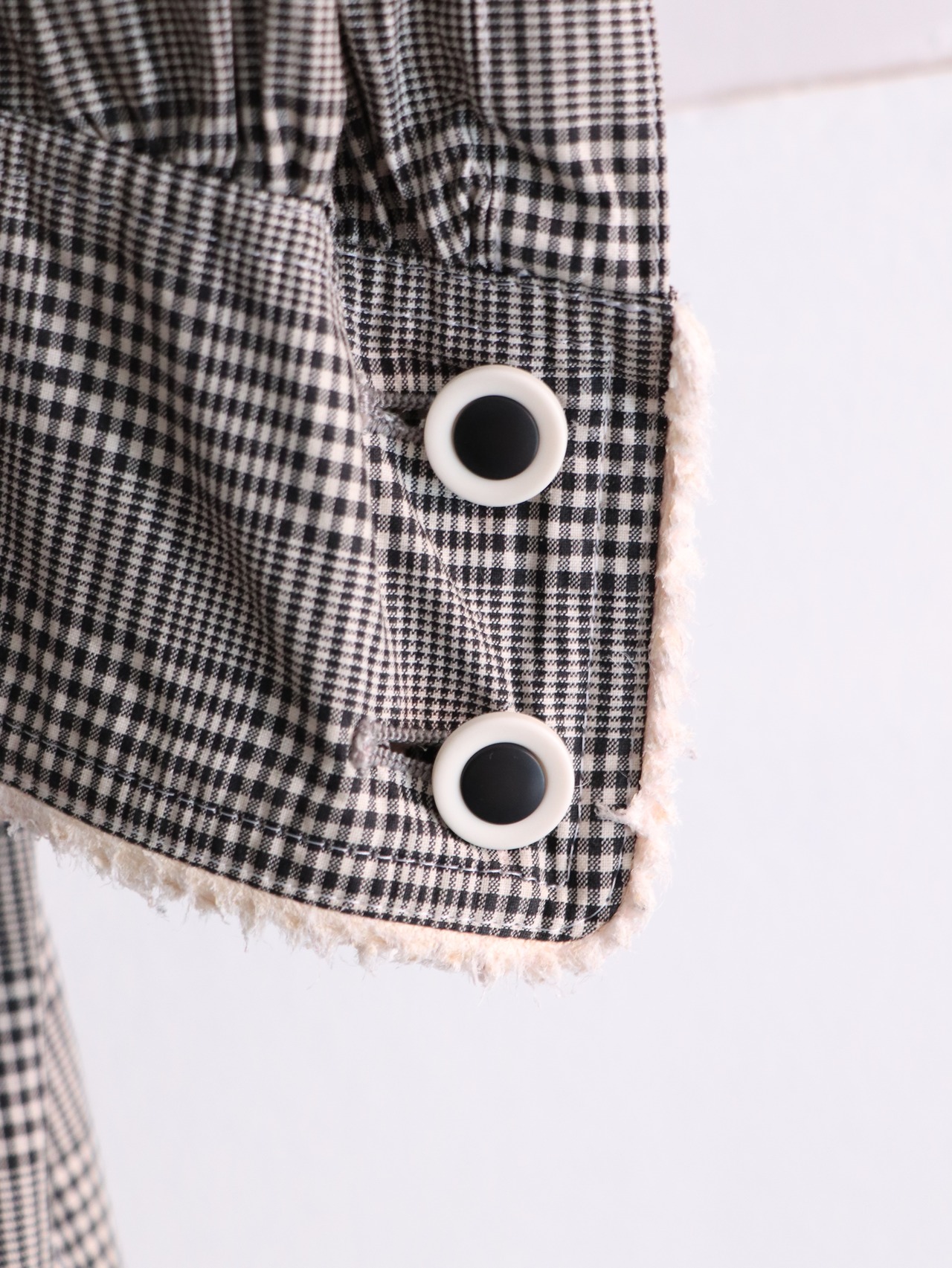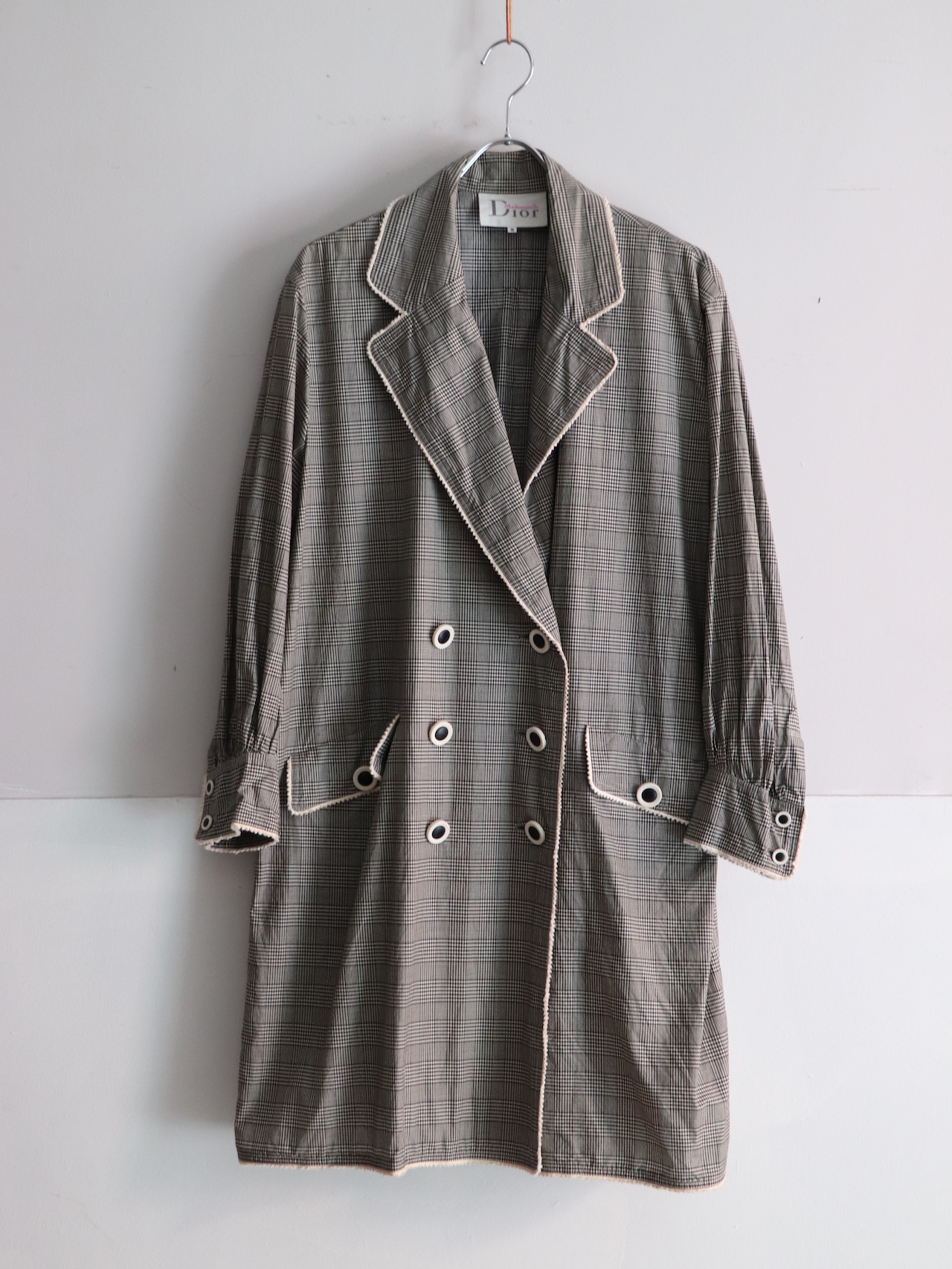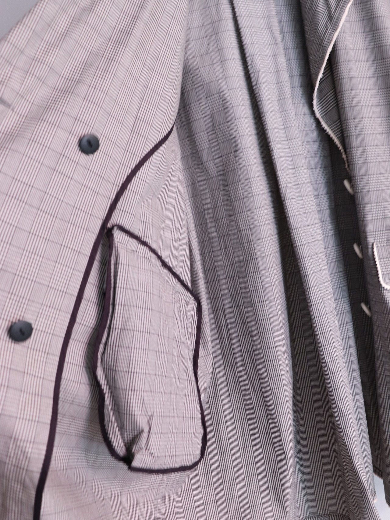 千鳥格子の様なギンガムチェックのロングジャケット。