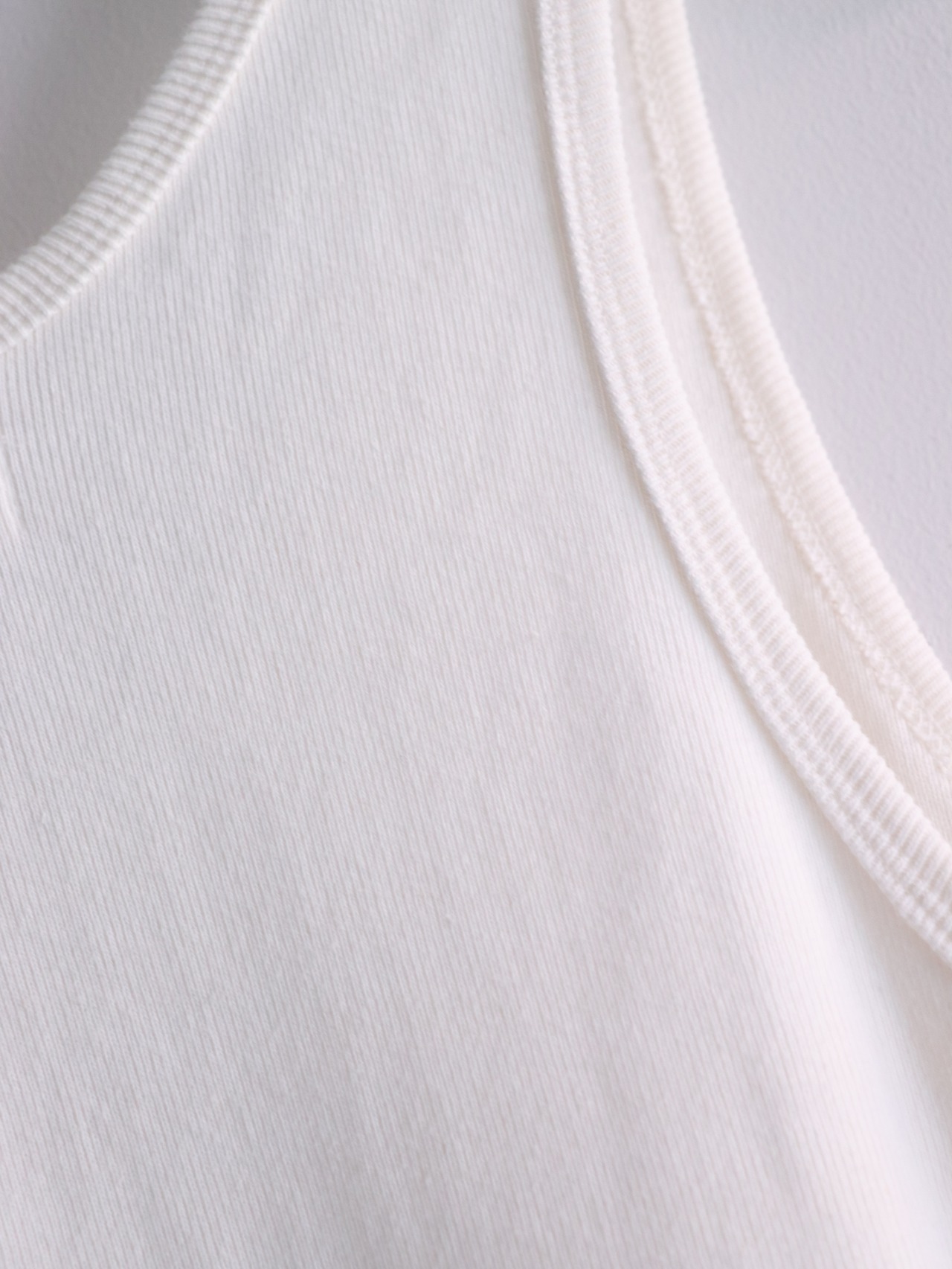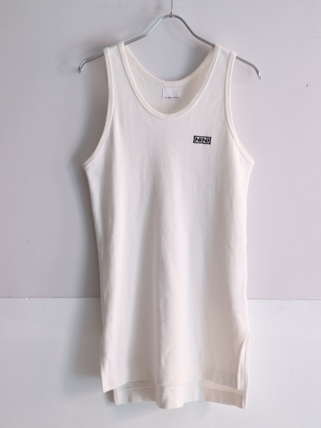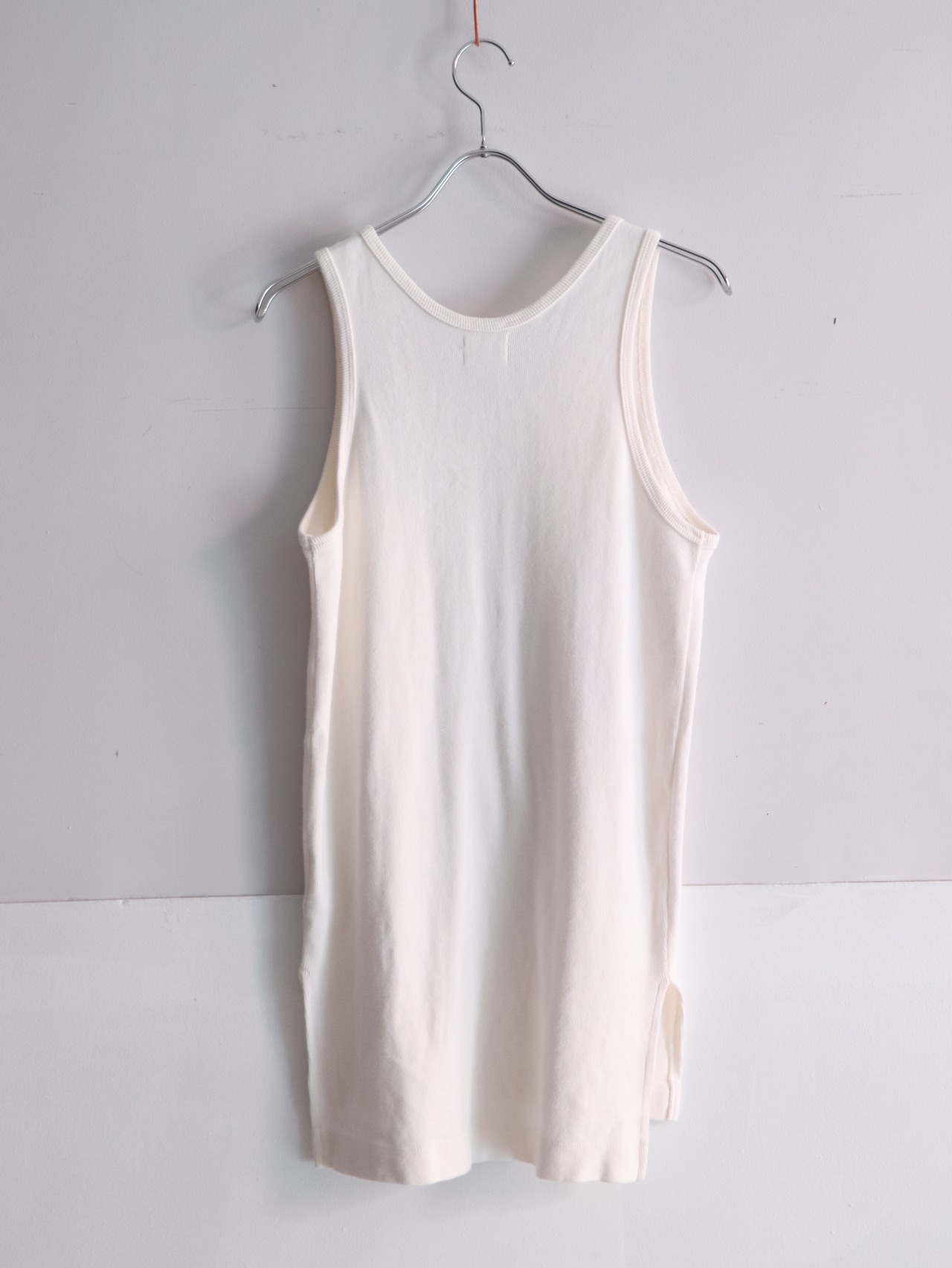 着丈の長いロングタンク仕様で、見頃の段差やスタイリッシュなパターンがモードな印象に。